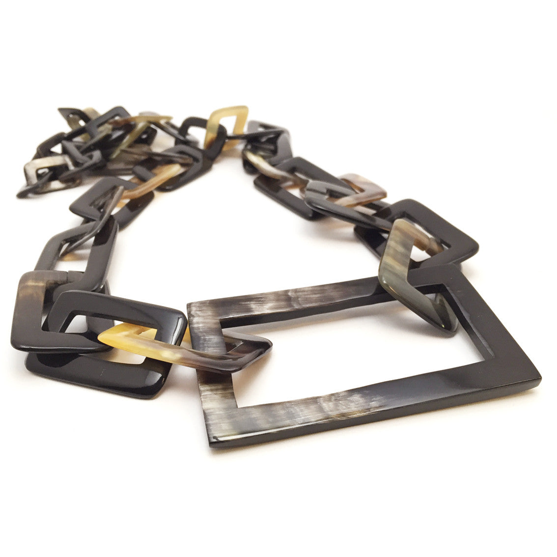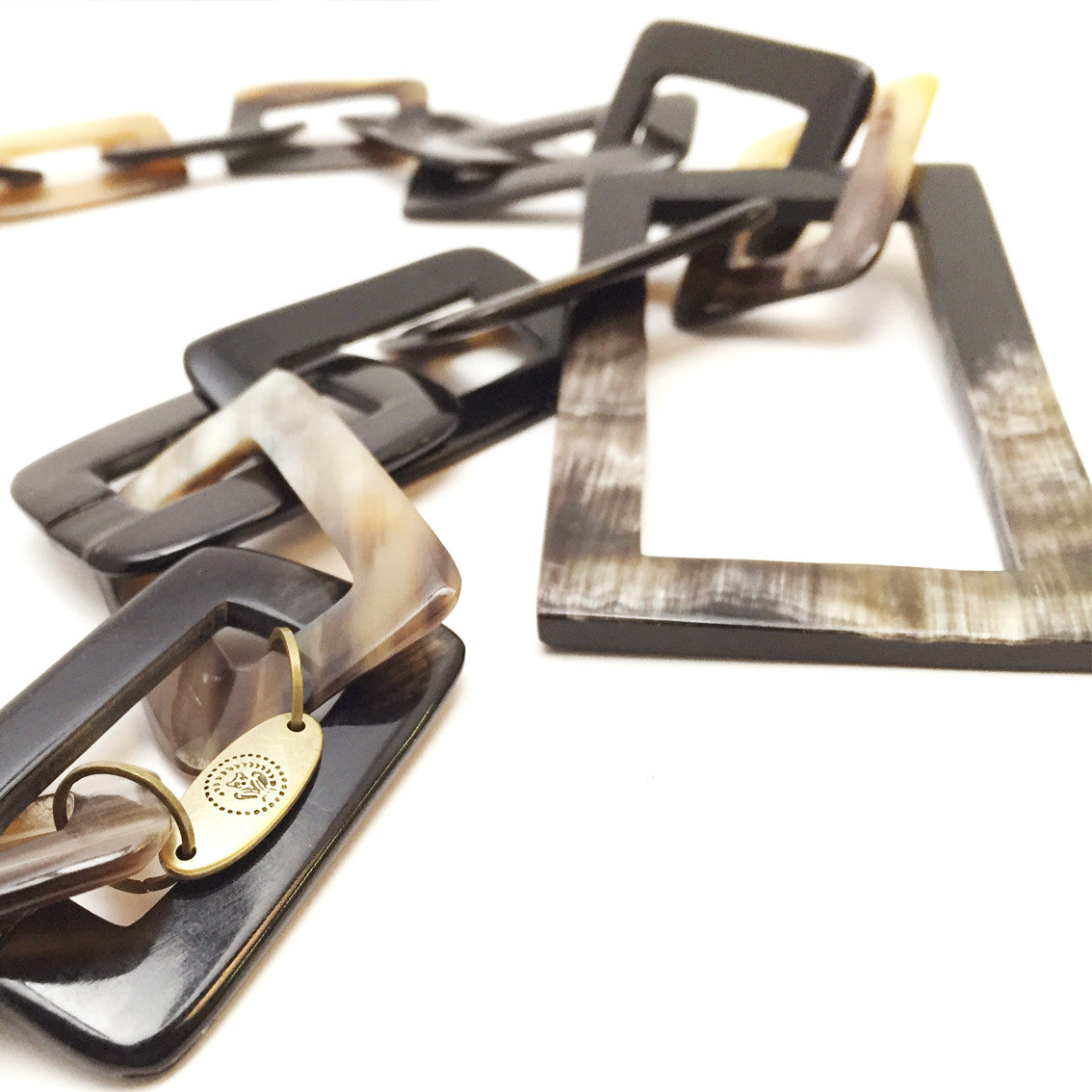 Ein Eyecatcher unsere Horn Halsketten wie diese in rechteckiger form gefertigt mit einem großen rechteckigem Element.